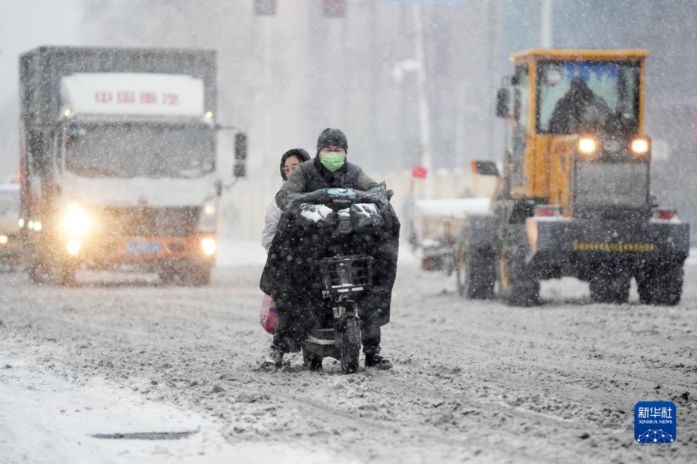 11月6日,哈爾濱市民在風(fēng)雪中騎車(chē)出行。