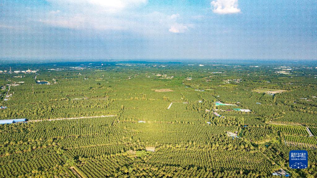 這是11月3日在泰國叻武里府丹嫩沙多拍攝的椰子園(無(wú)人機照片)。