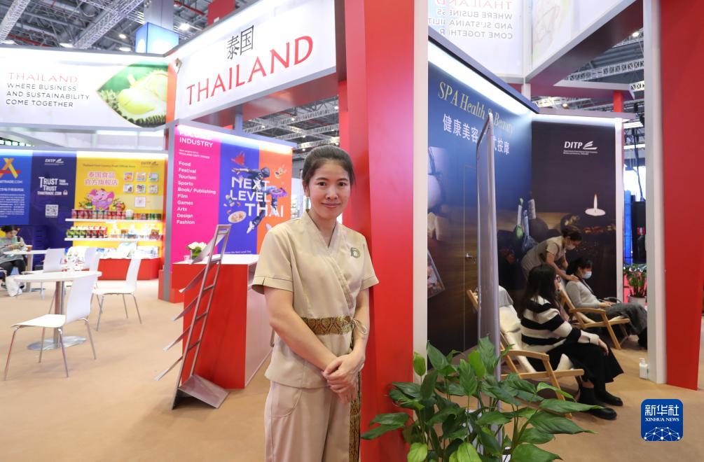 11月6日,來(lái)自泰國的寶拉站在泰國國家館展臺前。寶拉來(lái)中國八個(gè)月,目前在上海一家泰式按摩店工作,她為能代表泰國參加進(jìn)博會(huì )感到自豪。
