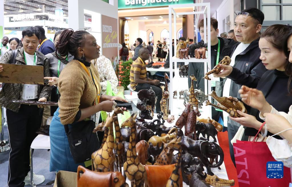 11月6日,來(lái)自津巴布韋的艾薇頓絲·察卡瓦在展臺向參觀(guān)者介紹木雕展品。這是她第一次來(lái)到中國上海參加進(jìn)博會(huì ),這些木雕都是她的哥哥在家里制作的,她想通過(guò)進(jìn)博會(huì )為哥哥的木雕作品找到好的銷(xiāo)路。
