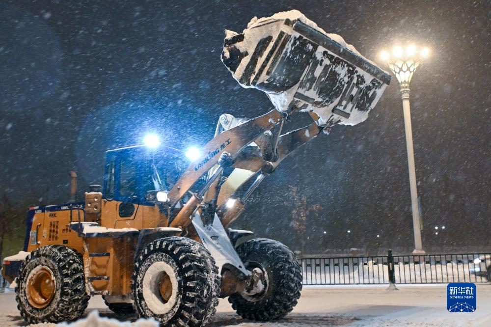 11月6日,一輛鏟車(chē)在哈爾濱友誼西路上鏟除積雪。