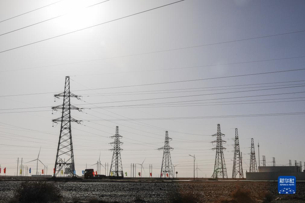 這是11月7日在甘肅省酒泉市瓜州縣拍攝的輸電線(xiàn)路。