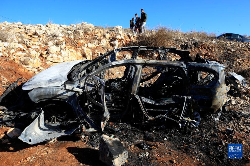 這是11月6日在黎巴嫩南部艾納塔拍攝的被以色列無(wú)人機炸毀的車(chē)輛殘骸。