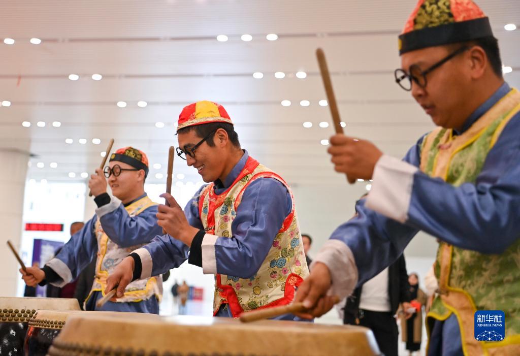 11月7日,演員在2023黃河非遺大展上表演絳州鼓樂(lè )。
