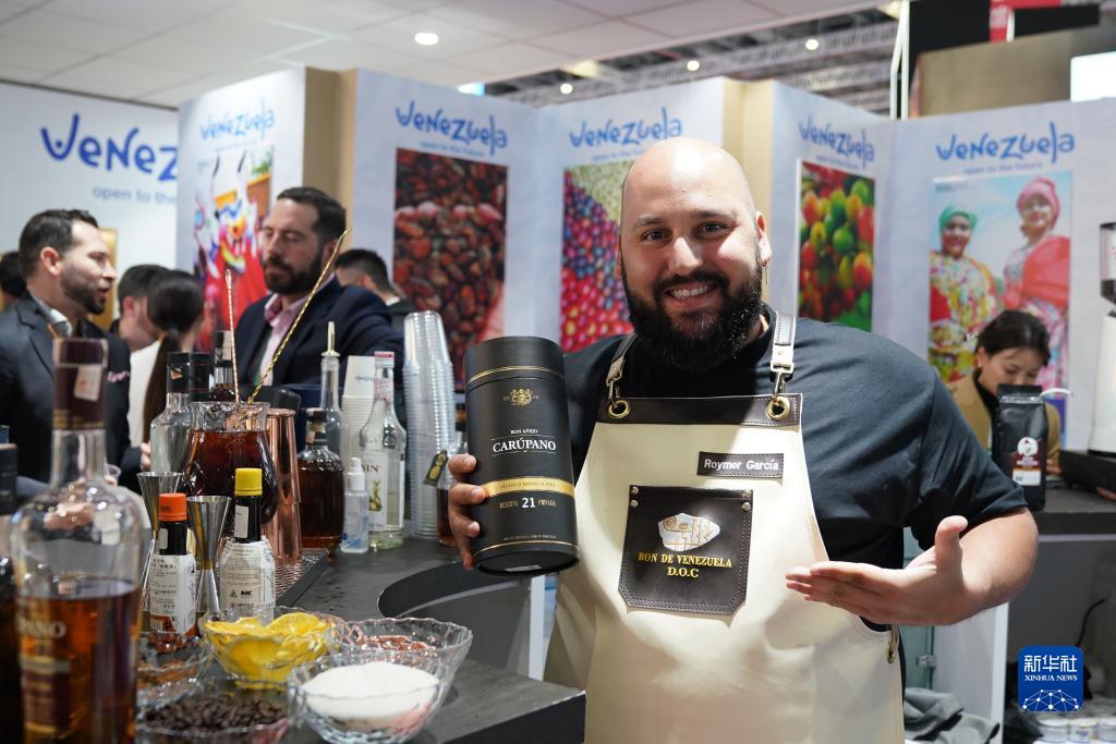 11月7日,展商在第六屆進(jìn)博會(huì )國家展委內瑞拉展臺展示朗姆酒。