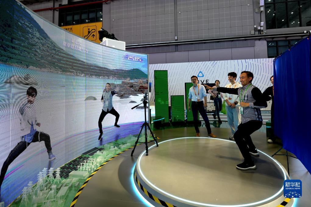 11月7日,在第六屆進(jìn)博會(huì )技術(shù)裝備展區,觀(guān)眾體驗“互動(dòng)健身房”。