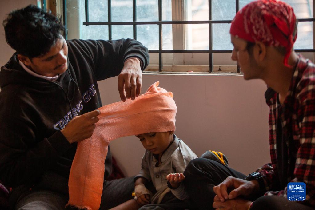 11月7日,地震傷者在尼泊爾尼泊爾根杰一所醫院內接受治療。
