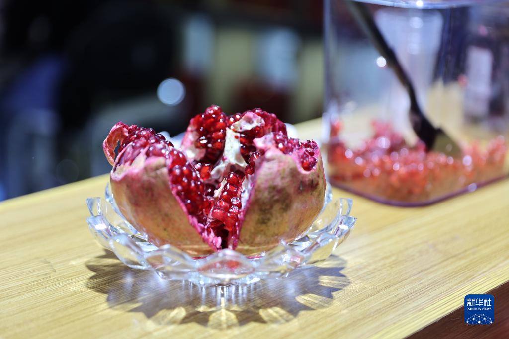 11月6日在第六屆進(jìn)博會(huì )食品及農產(chǎn)品展區拍攝的阿富汗坎大哈石榴。