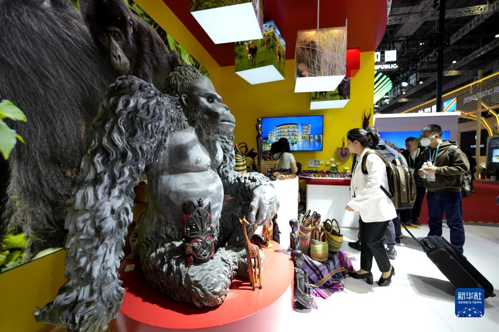 11月8日,在第六屆進(jìn)博會(huì )國家展區,觀(guān)眾在烏干達展臺參觀(guān)。