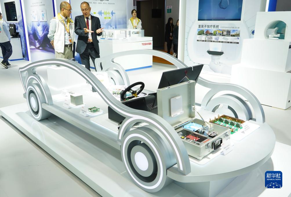 11月6日在第六屆進(jìn)博會(huì )技術(shù)裝備展區拍攝的東芝展臺。