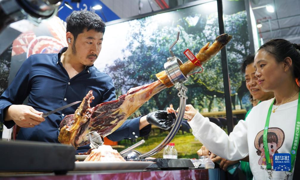 11月8日,在第六屆進(jìn)博會(huì )食品及農產(chǎn)品展區橡雅食品展臺拍攝的西班牙伊比利亞火腿。