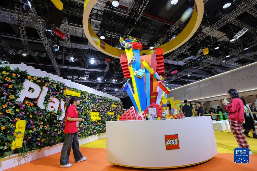 11月8日,游客在第六屆進(jìn)博會(huì )消費品展區參觀(guān)樂(lè )高展臺。