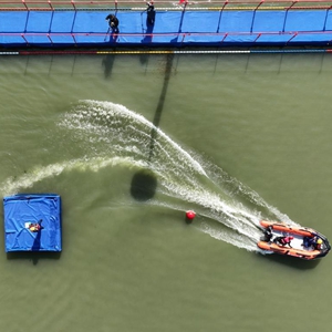 11月8日,消防員在南京玄武湖參加水域救援比賽(無(wú)人機照片)。
