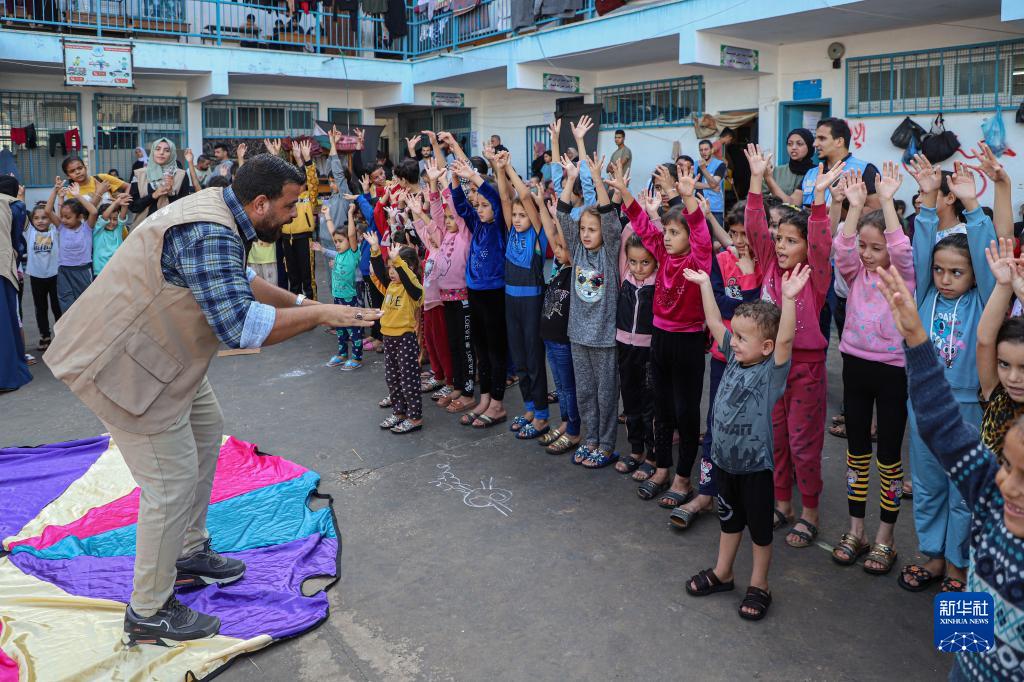 當日,在加沙地帶南部城市汗尤尼斯的一所聯(lián)合國近東巴勒斯坦難民救濟和工程處附屬學(xué)校內,當地志愿者組織多種活動(dòng),關(guān)愛(ài)流離失所的兒童,撫慰戰事創(chuàng )傷。新一輪巴以沖突爆發(fā)一個(gè)月來(lái),加沙地帶已有超過(guò)1萬(wàn)人死亡,其中大約40%是兒童。