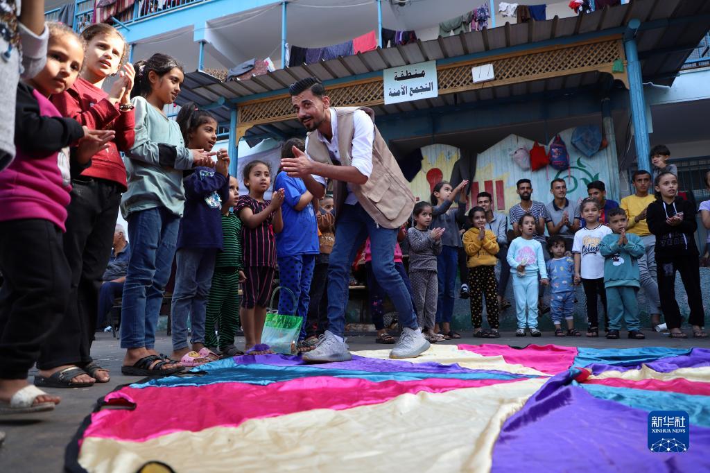 當日,在加沙地帶南部城市汗尤尼斯的一所聯(lián)合國近東巴勒斯坦難民救濟和工程處附屬學(xué)校內,當地志愿者組織多種活動(dòng),關(guān)愛(ài)流離失所的兒童,撫慰戰事創(chuàng )傷。新一輪巴以沖突爆發(fā)一個(gè)月來(lái),加沙地帶已有超過(guò)1萬(wàn)人死亡,其中大約40%是兒童。