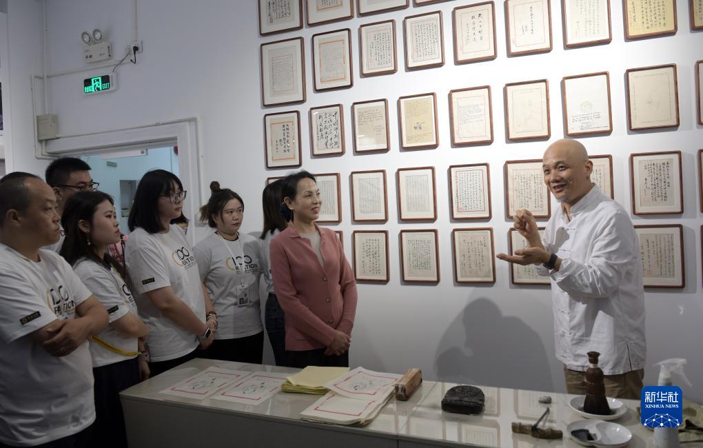 當日,十竹齋木版水印藝術(shù)作品展在暨南大學(xué)廣州石牌校區舉行。國家非遺項目木版水印技藝代表性傳承人魏立中在展覽現場(chǎng)為學(xué)生導賞、授課,并指導學(xué)生體驗木版水印手作的樂(lè )趣。