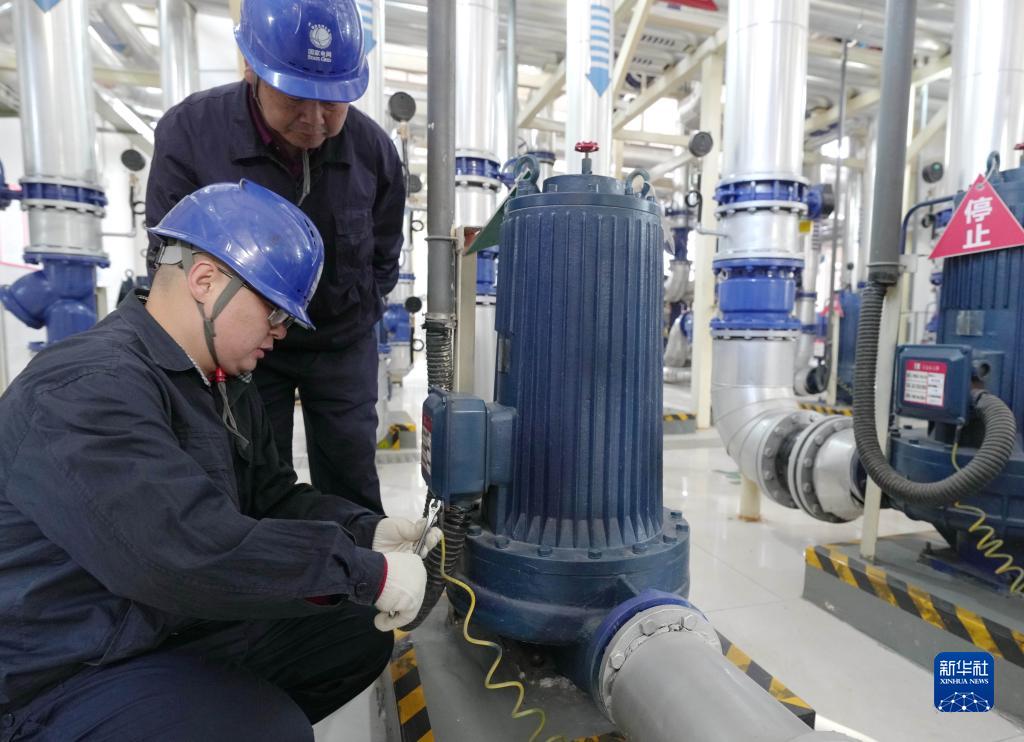 11月9日,國網(wǎng)辛集市供電公司工人檢修供熱電力設備。