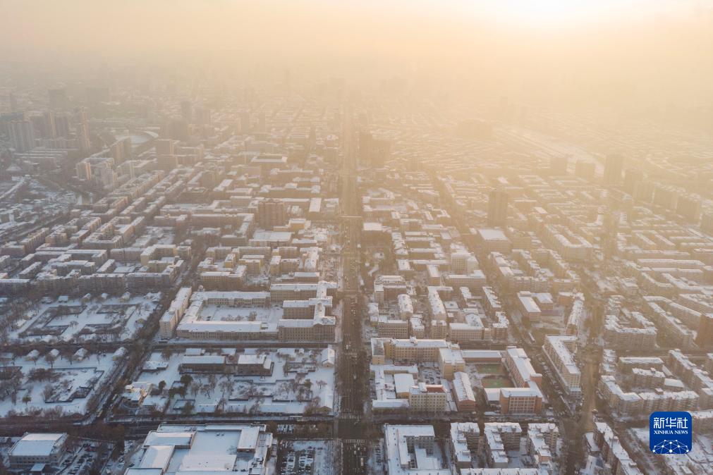 這是11月9日拍攝的哈爾濱主城區雪景(無(wú)人機照片)。