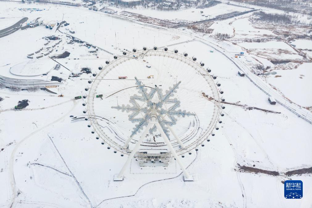 這是11月9日拍攝的位于哈爾濱冰雪大世界園區內的雪花摩天輪(無(wú)人機照片)。