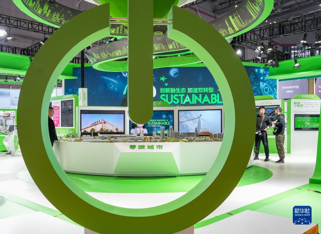 11月9日拍攝的施耐德電氣展臺展出的“零碳城市”愿景模型。