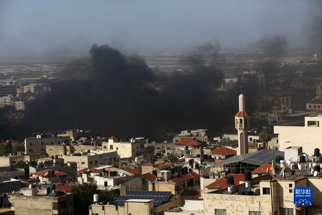 這是11月9日在約旦河西岸杰寧沖突現場(chǎng)升起的濃煙。