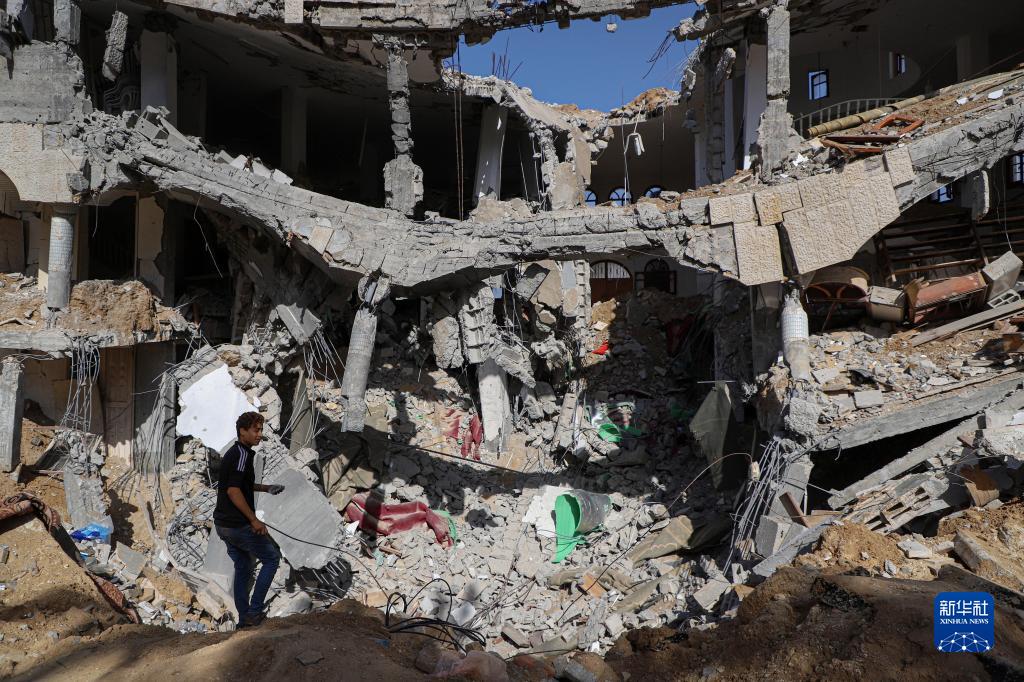 這是11月9日在加沙地帶南部城市汗尤尼斯拍攝的被損毀的建筑物。