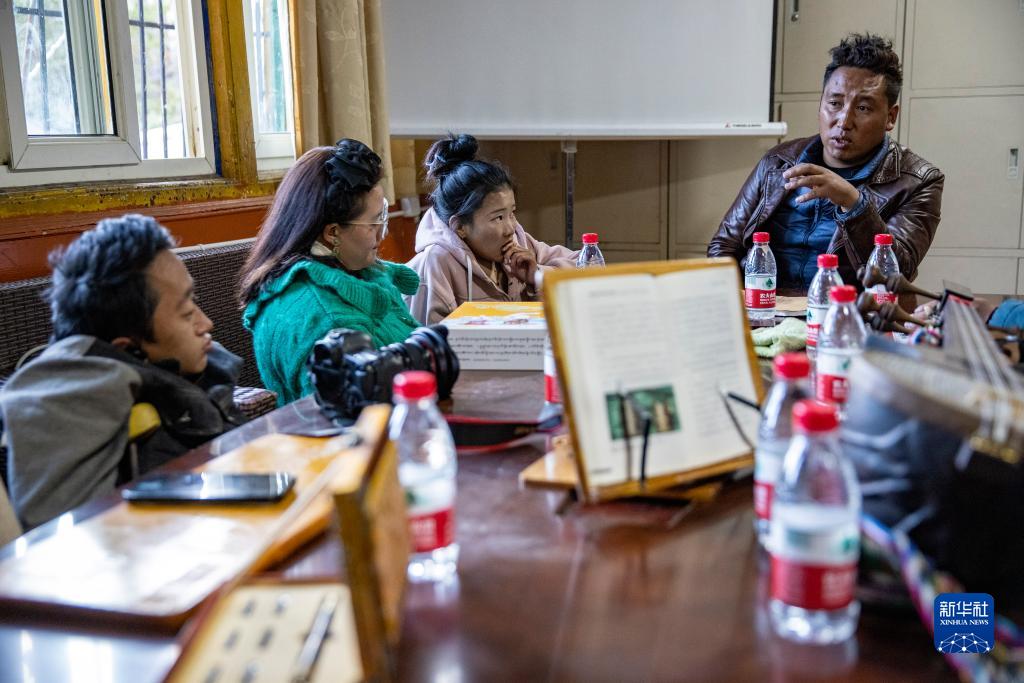 西藏拓崗文化傳播有限公司負責人覺(jué)列(右一)在直播前與直播團隊討論直播方案(11月10日攝)。