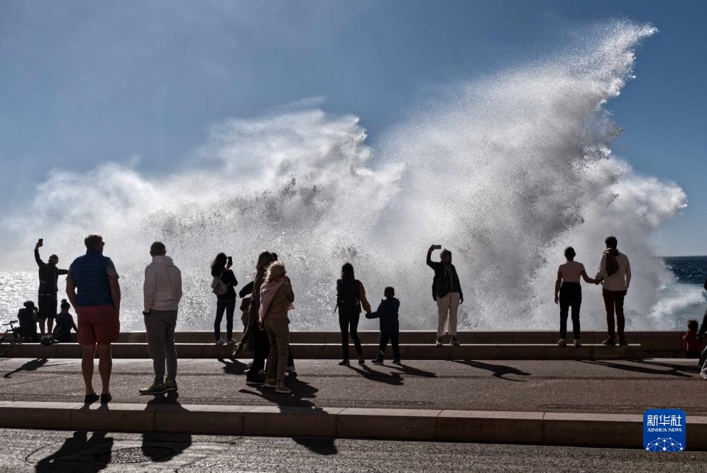 近日,受風(fēng)暴天氣影響,法國尼斯海岸巨浪拍岸,吸引人們駐足觀(guān)看。