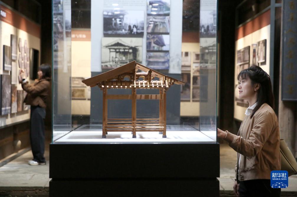 11月10日,參觀(guān)者在第六屆中國非物質(zhì)文化遺產(chǎn)傳統技藝大展徽州區分會(huì )場(chǎng)了解徽州傳統建筑營(yíng)造技藝。