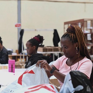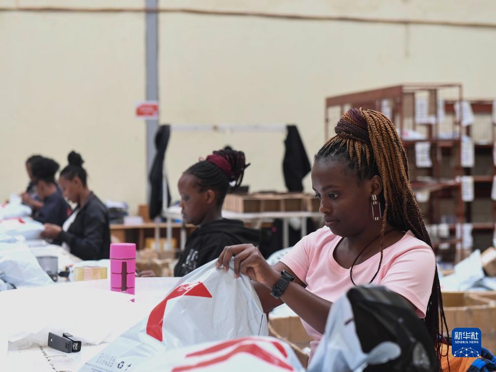 11月10日,在肯尼亞姆洛隆戈,Kilimall員工在倉庫內包裝商品。