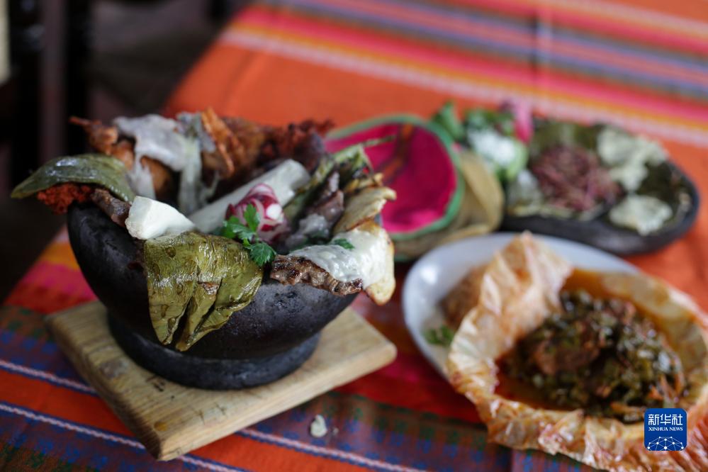 這是在墨西哥墨西哥州拍攝的使用仙人掌等為原材料制作的當地特色食品(8月3日攝)。
