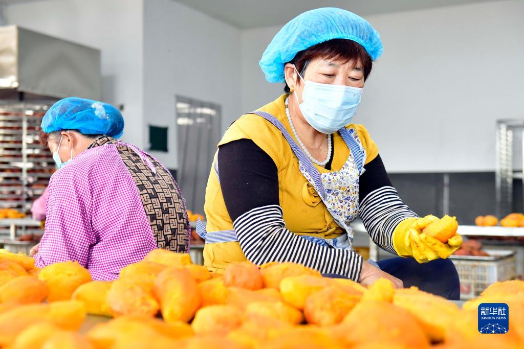 11月11日,在五蓮縣潮河鎮魏家薯干專(zhuān)業(yè)合作社,工作人員在加工薯干。