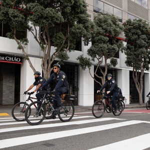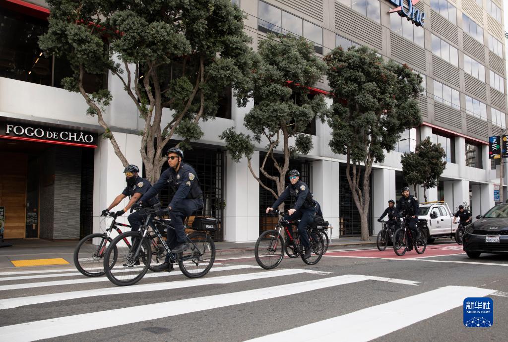11月10日,警察在美國舊金山亞太經(jīng)合組織會(huì )議場(chǎng)地外執勤。