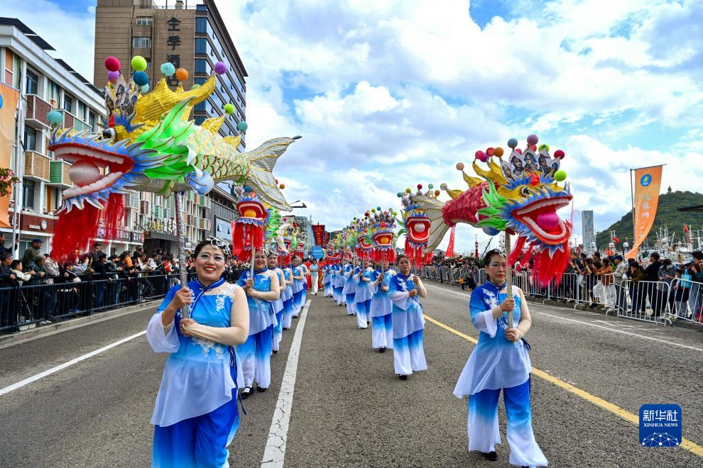 11月11日,民間藝術(shù)方陣在浙江省舟山市參加第八屆沈家門(mén)漁港民間民俗大會(huì )開(kāi)幕式巡游展演。
