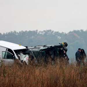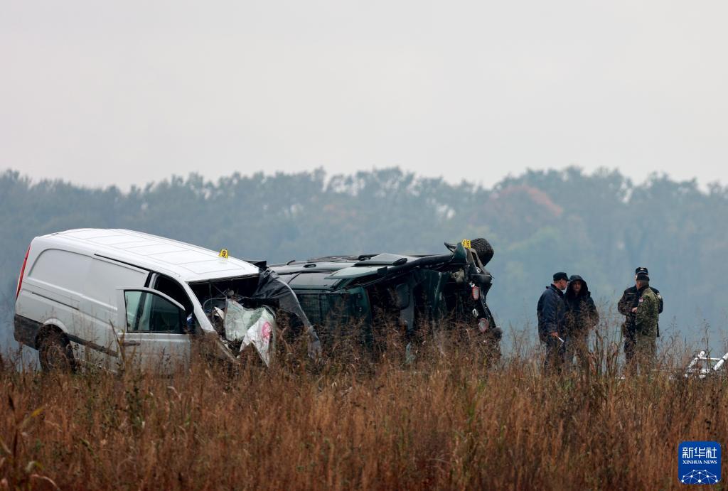11月11日,在克羅地亞?wèn)|部城市溫科夫齊,工作人員聚集在巴諾日奇造成的交通事故現場(chǎng)。
