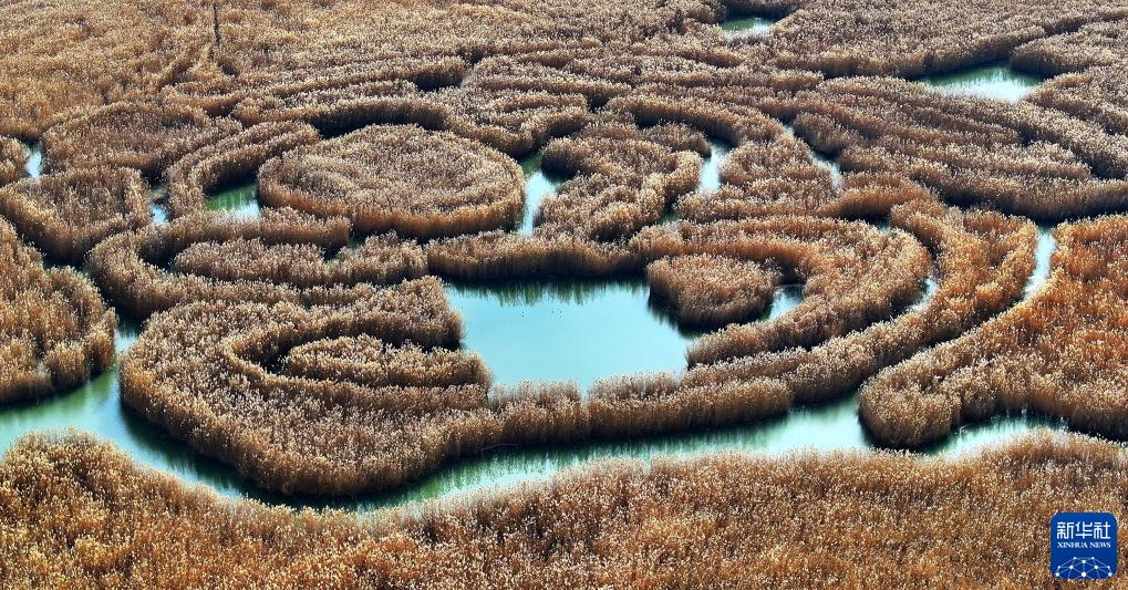 立冬節氣過(guò)后,位于寧夏銀川市興慶區的鳴翠湖國家濕地公園,金黃色的蘆葦隨風(fēng)飄蕩,各色林木五彩斑斕,構成獨特的初冬濕地景觀(guān)。