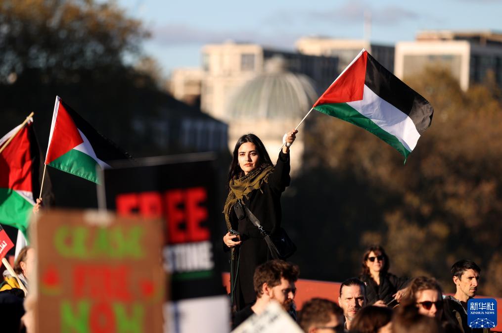 當日,數十萬(wàn)民眾在英國倫敦參加聲援巴勒斯坦的游行集會(huì ),呼吁盡快實(shí)現加沙?;?。