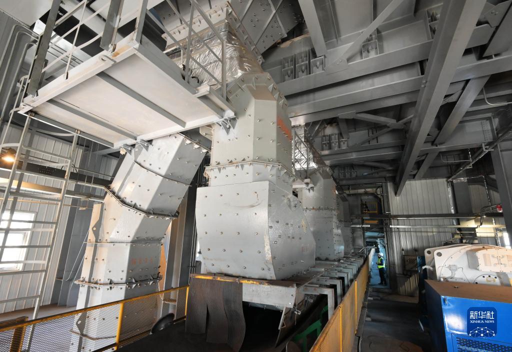 11月12日,工人在唐山海港經(jīng)濟開(kāi)發(fā)區管帶機廊道轉接機房查看礦石輸送情況。