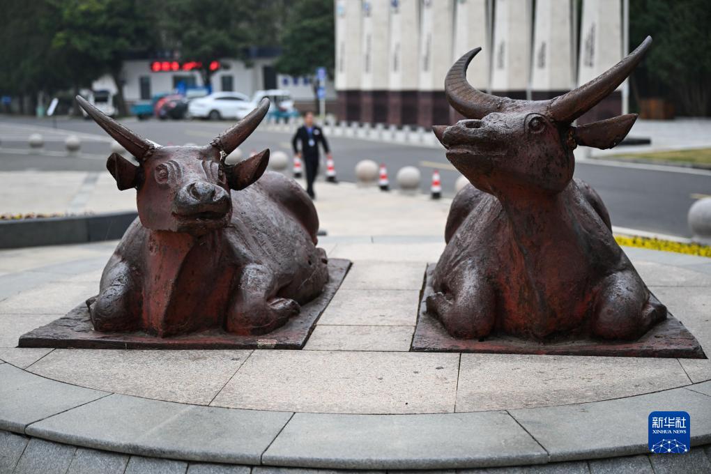 三河閘展示的清代鎮水鐵牛(11月9日攝)。