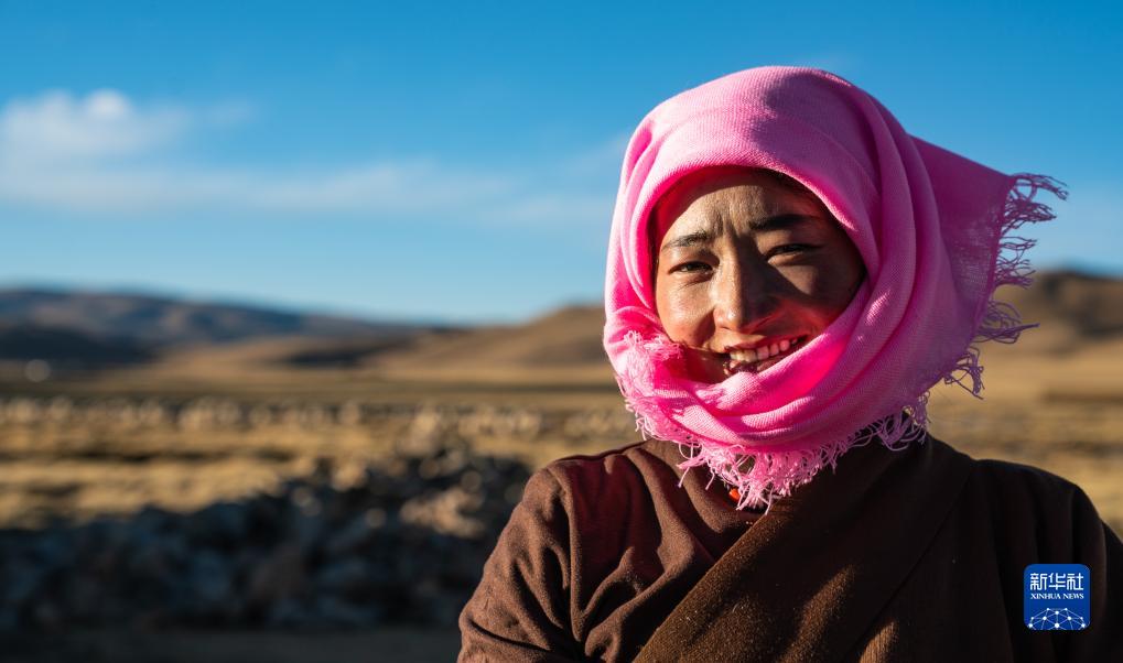 這是生活在西藏當雄縣納木湖鄉達布村的牧民芝嘎措姆(11月10日攝)。