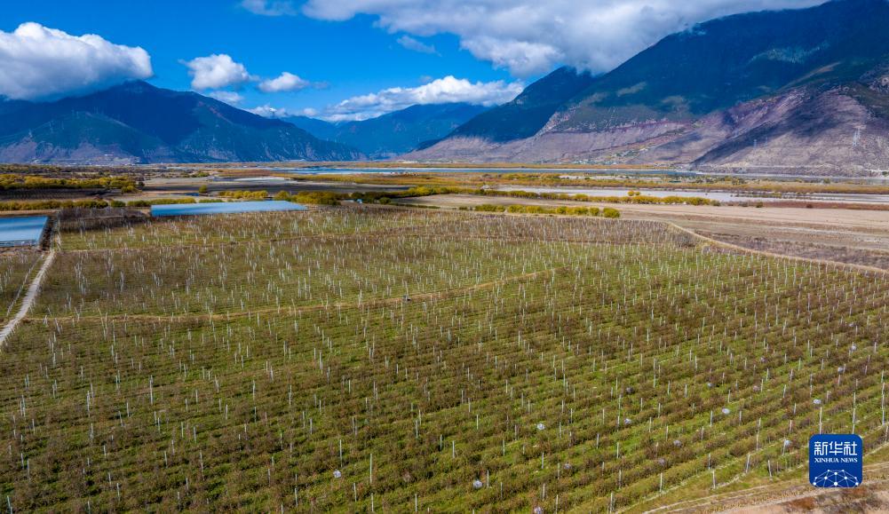 鳥(niǎo)瞰米林市羌納鄉西藏林芝現代蘋(píng)果標準化園區(無(wú)人機照片,11月13日攝)。