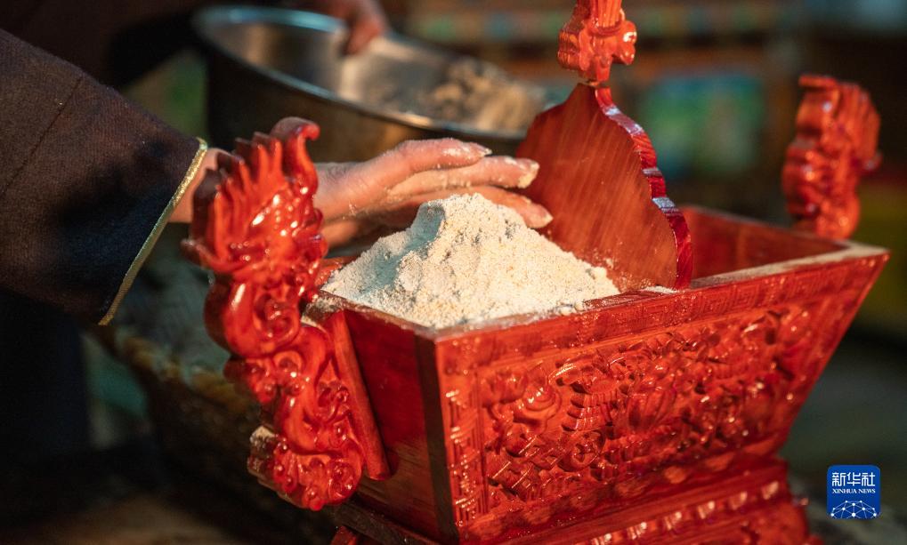 工布新年的年三十,拉巴卓瑪在準備寓意五谷豐登的“切瑪”(11月13日攝)。