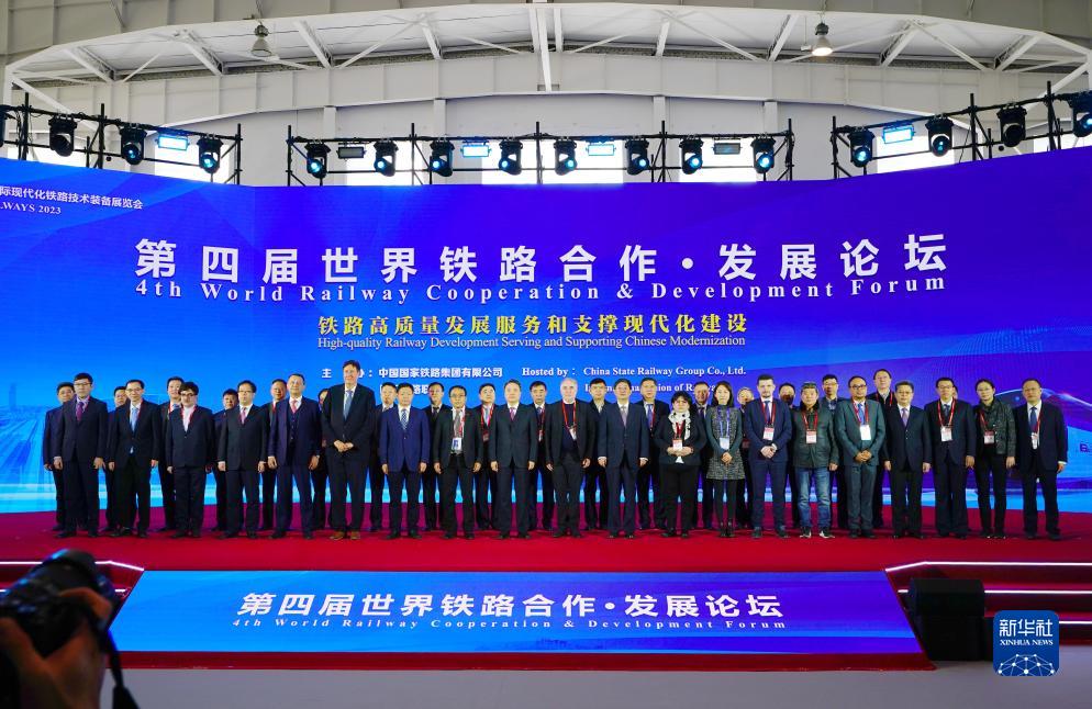 11月14日,參加第四屆世界鐵路合作·發(fā)展論壇的嘉賓在合影留念。