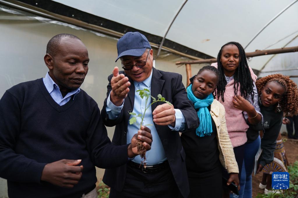在肯尼亞納庫魯郡舉辦的中非農業(yè)發(fā)展和減貧示范村番茄生產(chǎn)培訓班上,來(lái)自中國的農學(xué)教授劉高瓊(左二)為肯方學(xué)員指導農業(yè)技術(shù)(2023年9月18日攝)??夏醽喖{庫魯郡的馬坦吉提薩村是“‘一帶一路’南南合作農業(yè)教育科技創(chuàng )新聯(lián)盟”在非洲建設的首批示范村之一。多年來(lái),中國農業(yè)專(zhuān)家在當地開(kāi)展了知識培訓、技術(shù)指導和農業(yè)設施修繕等工作,有效助力中國先進(jìn)的農業(yè)技術(shù)在納庫魯地區的示范推廣,幫助農民實(shí)現增收減貧的目標。