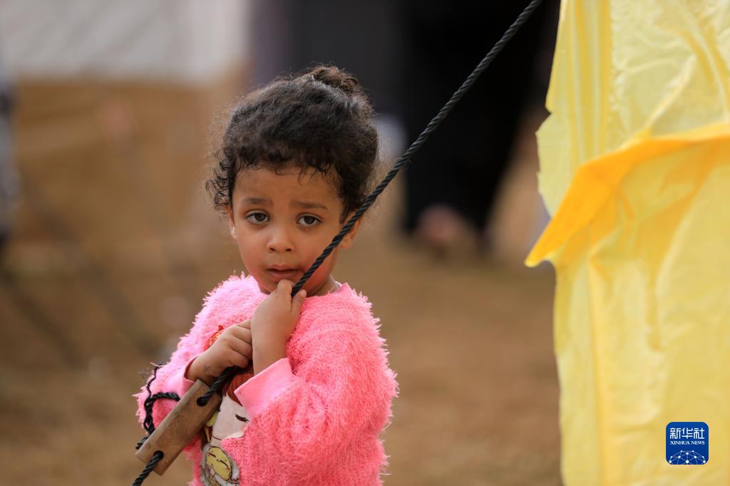 這是11月14日在加沙地帶南部城市汗尤尼斯一個(gè)臨時(shí)營(yíng)地拍攝的巴勒斯坦兒童。