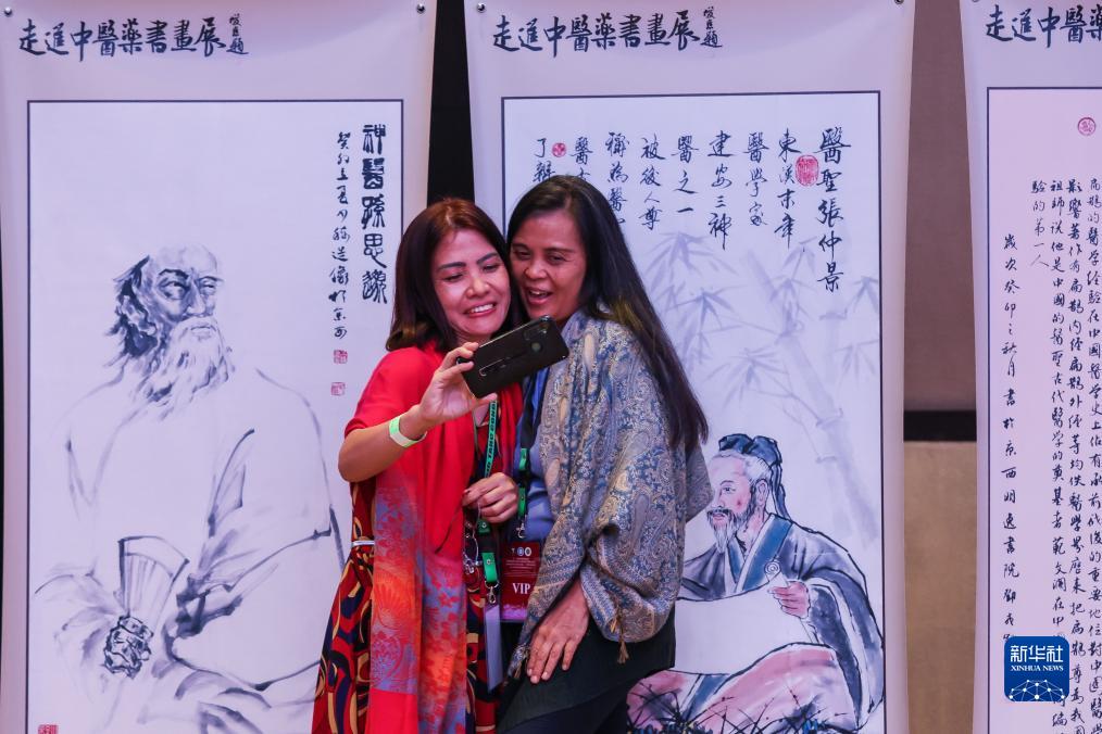 11月14日,在菲律賓首都馬尼拉,人們在第二十屆世界中醫藥大會(huì )上自拍合影。