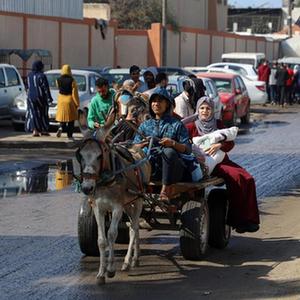 11月14日,在加沙地帶南部城市拉法,志愿者為流離失所的巴勒斯坦人理發(fā)。