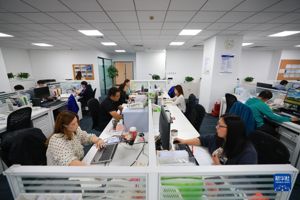 這是11月9日在天津國際航運大廈拍攝的一家外資航運物流企業(yè)內景。