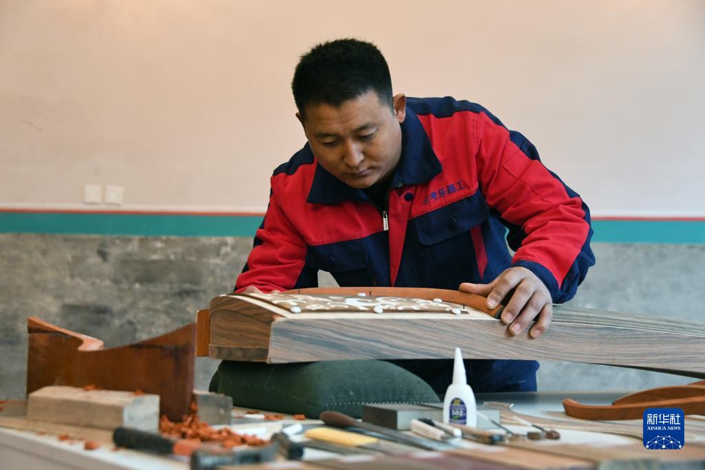 11月15日,樂(lè )器制作師在活動(dòng)中展示“蘭考古箏”制作。