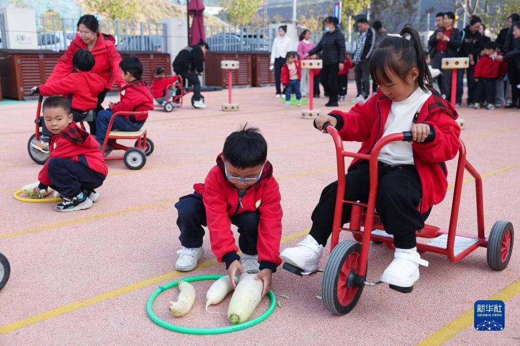 11月15日,孩子們參加校園豐收節趣味運動(dòng)“運蘿卜”。